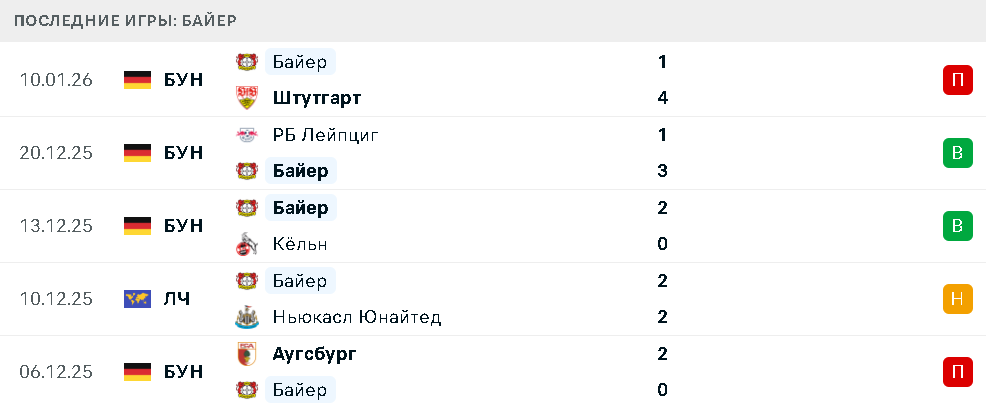 В пяти предыдущих матчах во всех турнирах «Байер» одержал победы над «Кельном» и «Лейпцигом», а также сыграл вничью с «Ньюкаслом». Кроме того, команда уступила «Аугсбургу» и «Штутгарту».