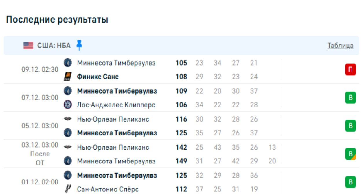 В прошлый раз соперники пересекались в мае, когда Миннесота на своей площадке победила 121:110. В предыдущих 8 поединках у оппонентов паритет — по 4 победы.