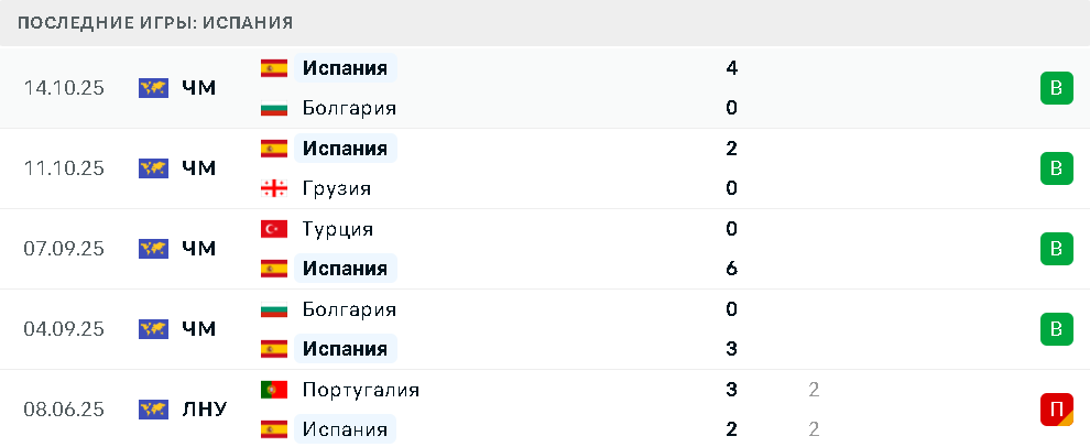 Последние игры сборной Испании
