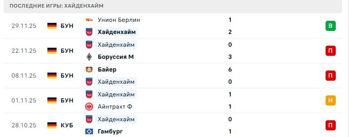 «Хайденхайм» подходит к матчу в роли явного аутсайдера, демонстрируя одну из худших атак и оборон в лиге. Команда испытывает серьезные проблемы во всех линиях. «Фрайбург» показывает нестабильную игру, но обладает значительным превосходством в классе. Наиболее вероятным исходом выглядит уверенная победа «Фрайбурга», однако проблемы в обороне гостей могут позволить «Хайденхайму» отличиться.