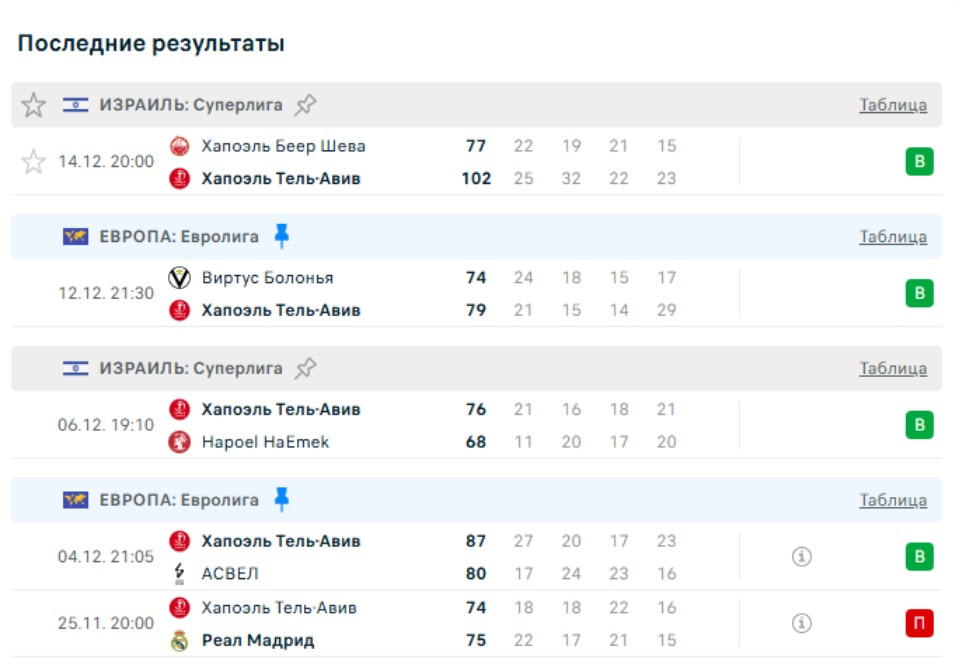 Последние игры Хапоэля