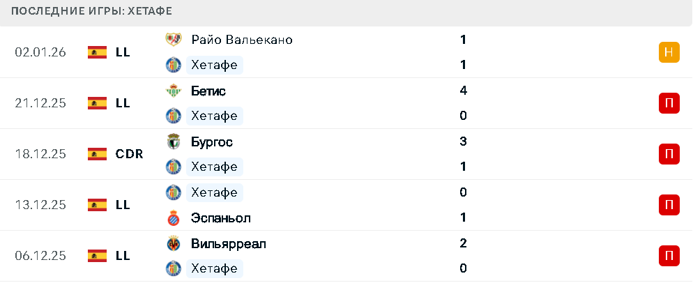 Последние матчи Хетафе