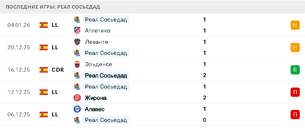 Последние матчи Реал Сосьедада