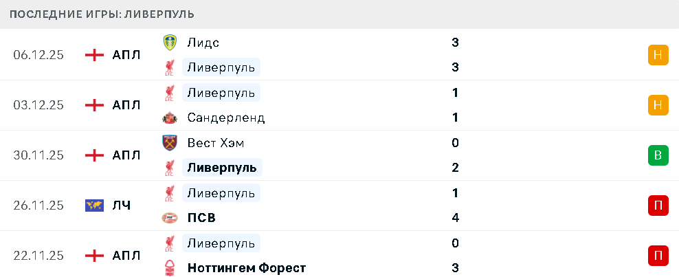 Последние игры Ливерпуля