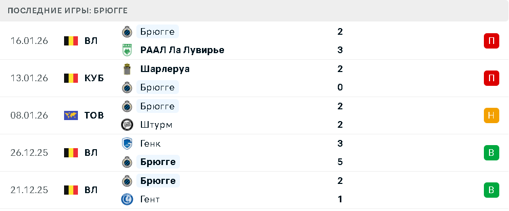 Последние игры Брюгге