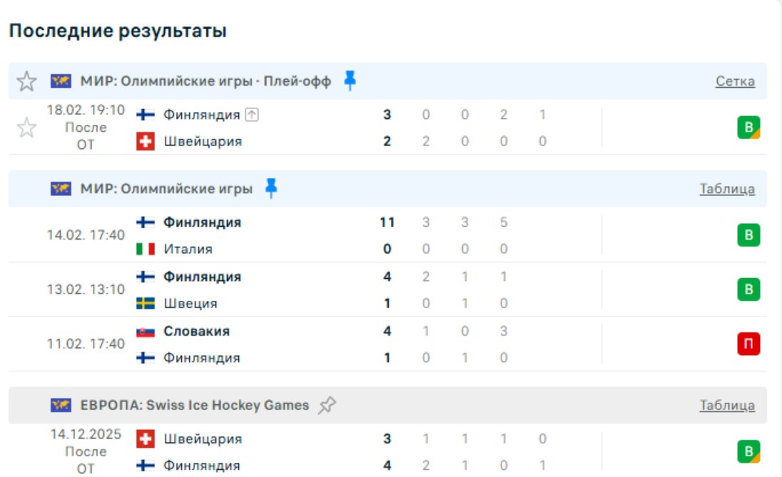 В предыдущий раз соперники играли на ЧМ-2025. Финны выиграли в серии буллитов 2:1. В последних 10 матчах на счету Суоми шесть побед.
