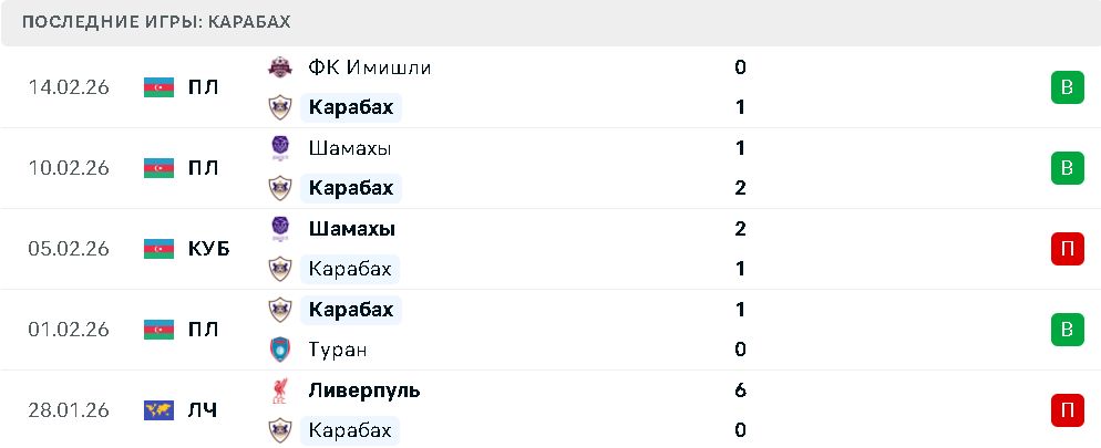 Предыдущий свой матч Карабах провел 14 февраля в гостях против клуба «Имишли» и без особого напряжения выиграл с минимальным счетом 1:0. Автором единственного гола на 79-й минуте стал Гурбанлы. Команда подходит к матчу в хорошем настроении и рассчитывает использовать фактор домашнего поля в плей-офф Лиги чемпионов.