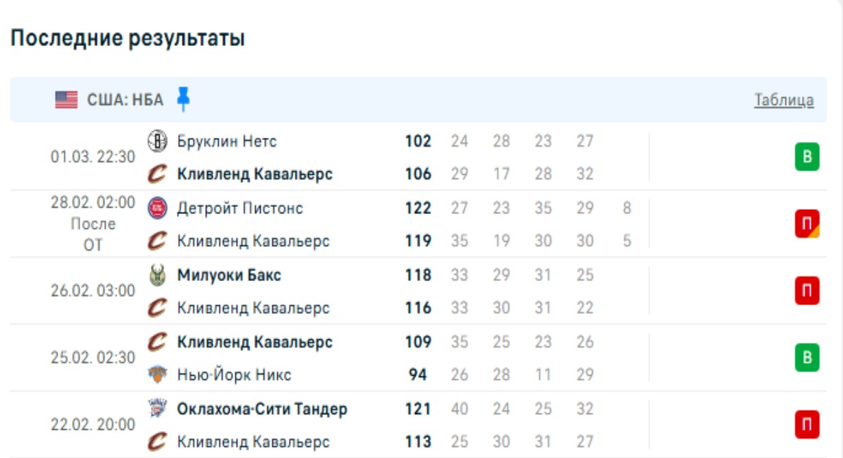 Последние игры Кливленд Кавальерс