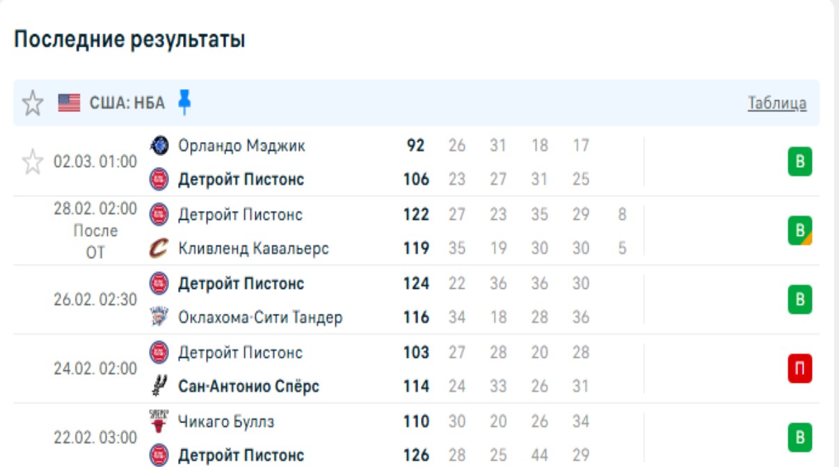 Последние игры Детройт Пистонс