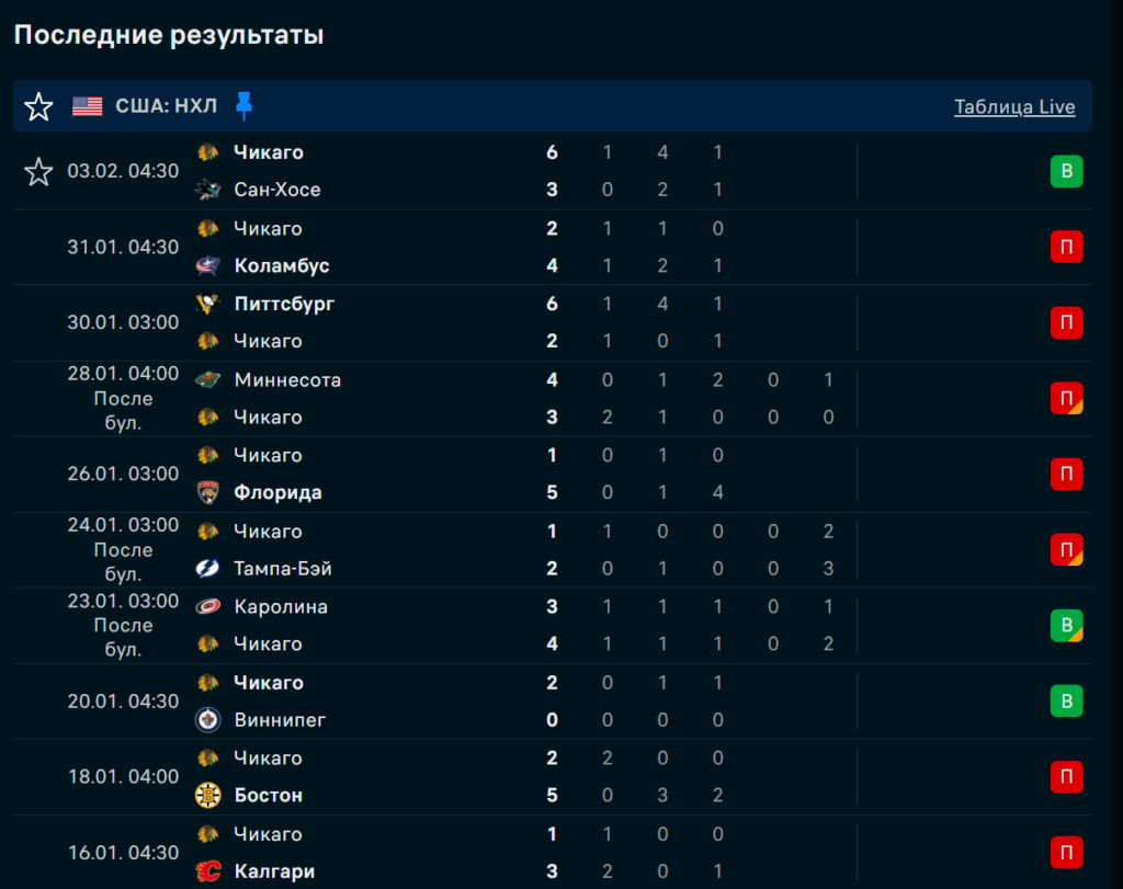 Последние игры Чикаго Блэкхокс