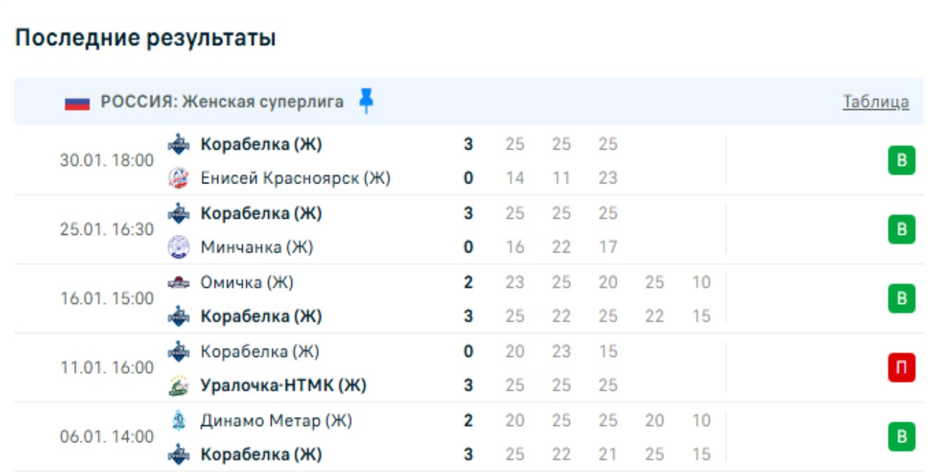 «Корабелка» поправила турнирное положение в матчах с командами из нижней части таблицы. «Динамо-Метар» и одного из претендентов на плей-офф «Омичку» удалось обыграть в гостях на тай-брейке. Победы над «Минчанкой» и «Енисеем» одержаны дома в трех партиях.
