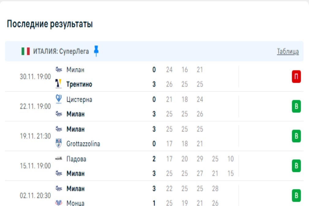 В прошлом туре прервалась 4-матчевая победная серия Милана. Команда Эккели в родных стенах уступила Трентино в 3 партиях. Только в стартовом сете миланцы сыграли с соперниками на равных, уступив со счетом 24:26. В 2 следующих партиях хозяева заработали 16 и 21 очко соответственно.