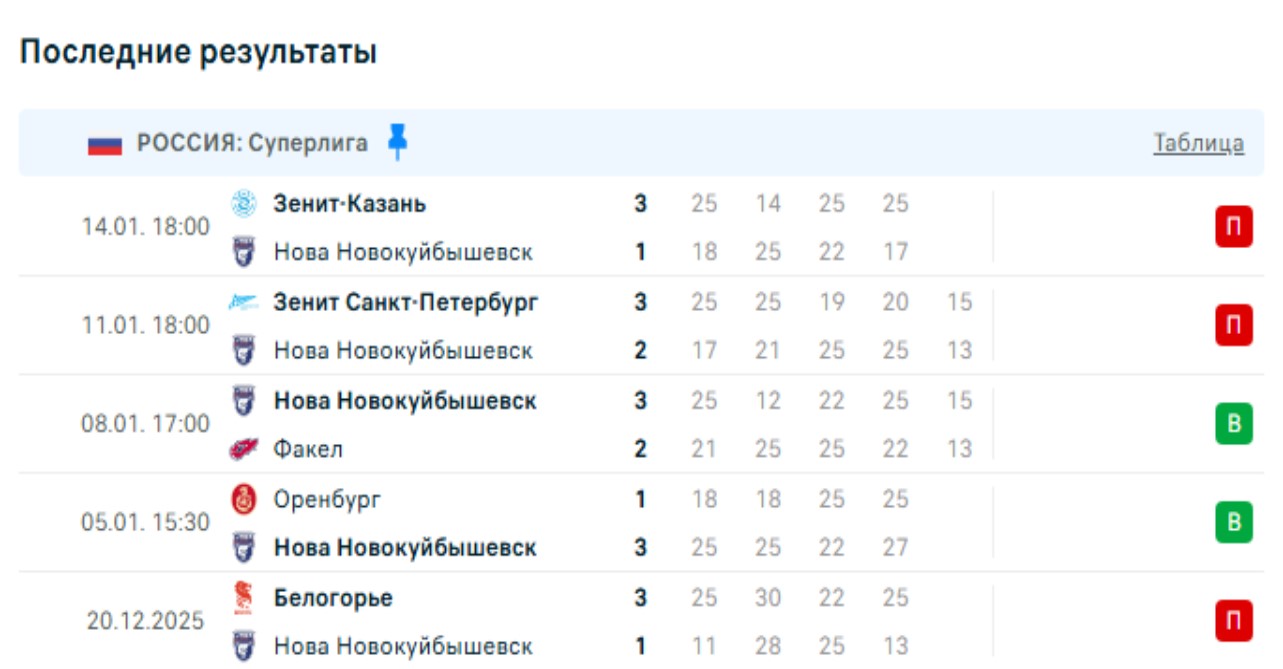 Нова выиграла половину из проведенных в регулярном чемпионате 18 матчей. Сейчас команда Максима Ворежонкова занимает восьмую строчку. В последних 4 турах побед и поражений у волейболистов из Новокуйбышевска поровну.