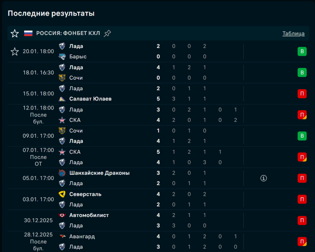 «Лада» обыграла «Барыс» (2:0), «Сочи» (4:0), проиграла «Салавату» (2:5) и «СКА» (3:4 по буллитам). В четырёх из пяти последних матчей команда пропускала не более двух шайб на домашнем льду.