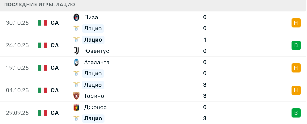 Последние игры Лацио