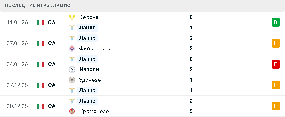 Последние игры Лацио