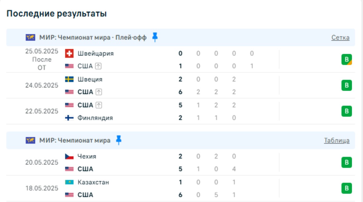 В предыдущий раз сборные пересекались на групповом этапе чемпионата мира 2024 года, американцы победили 6:3. В пользу сборной США закончились шесть предыдущих очных встреч, правда, дважды за этот период выиграть удавалось только в овертайме.