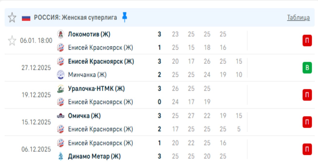В первом круге Ленинградка победила на выезде в 3 партиях. Всего на счету клуба из Северной столицы победы в 15 последних очных встречах. Енисей не добивался успеха с января 2019 года, когда сумел дома выиграть на тай-брейке.
