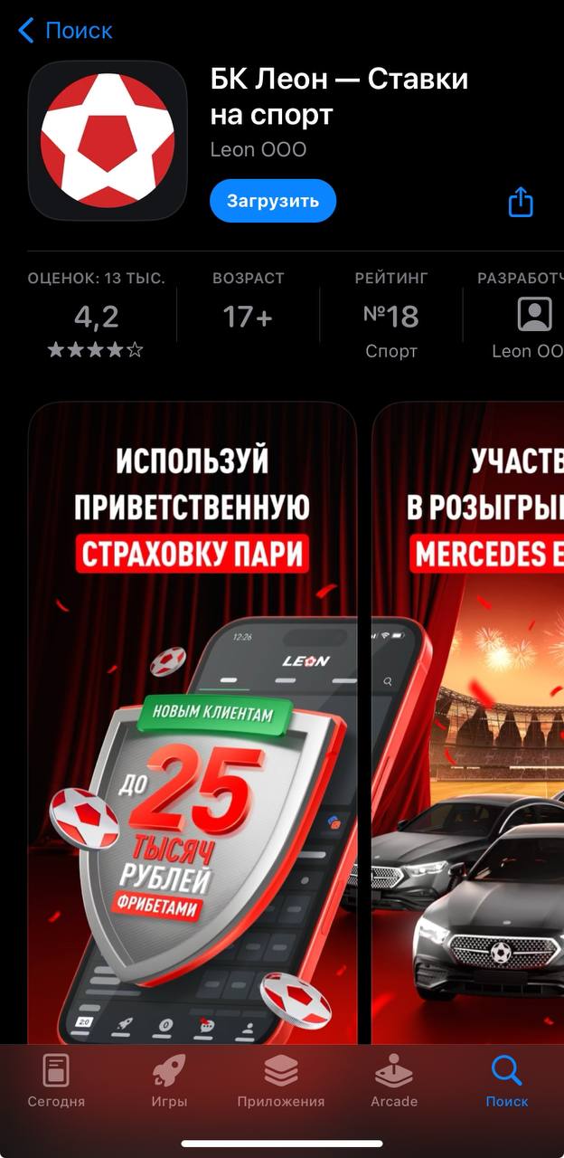 Качай приложение и получай 3999 рублей за регистрацию!Leon для Айфона: приложение