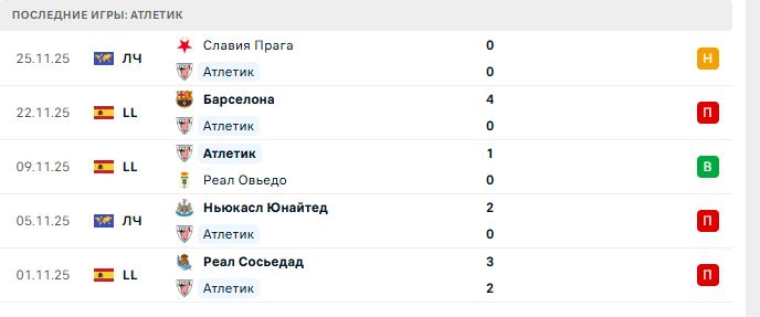 В ноябре команда показывает не самые яркие результаты: поражение от «Барселоны» (0:4) и ничья со «Славией Прага» (0:0) в Лиге Чемпионов. Ранее были зафиксированы победа над «Реал Овьедо» (1:0) и поражения от «Ньюкасла» (0:2) и «Реал Сосьедада» (2:3).
