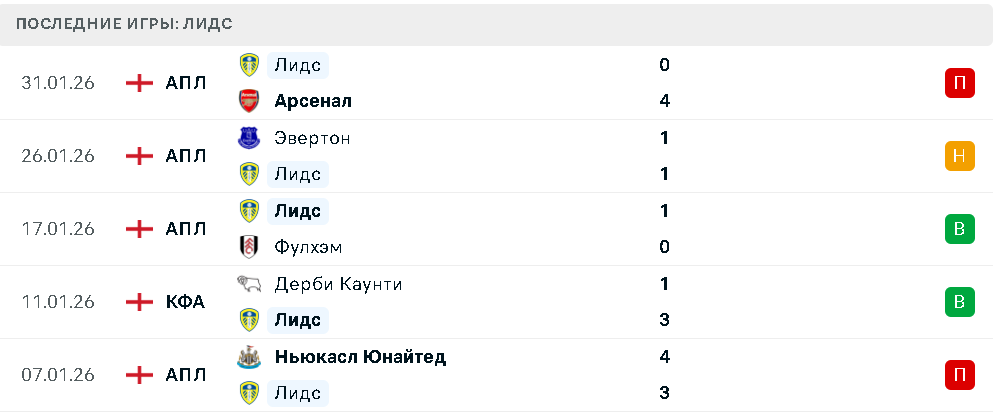 Последние игры Лидса