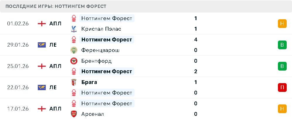 Последние игры Ноттингем Форест