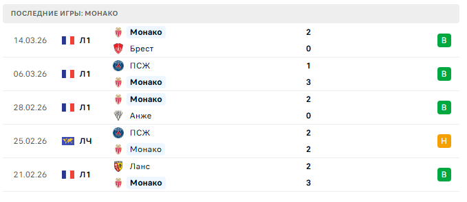 14 марта Монако обыграло Брест 2:0 дома — уверенная победа, команда не дала сопернику ни шанса и закрыла матч ещё в первом тайме.