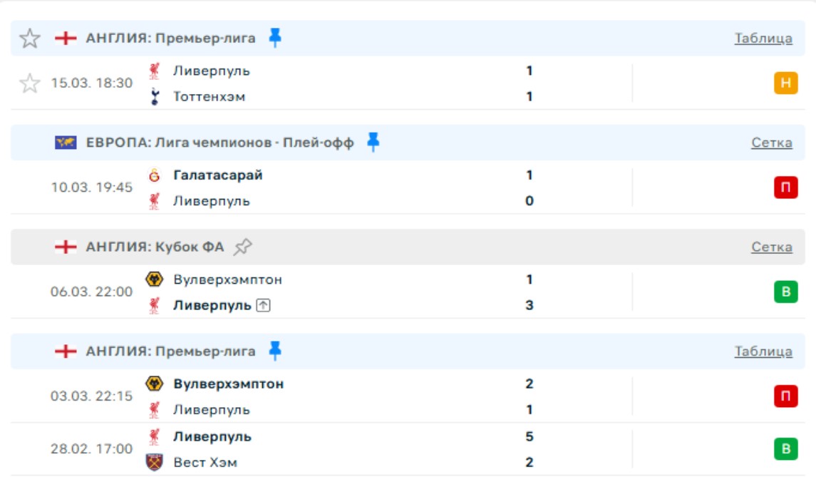 Последние игры Ливерпуля