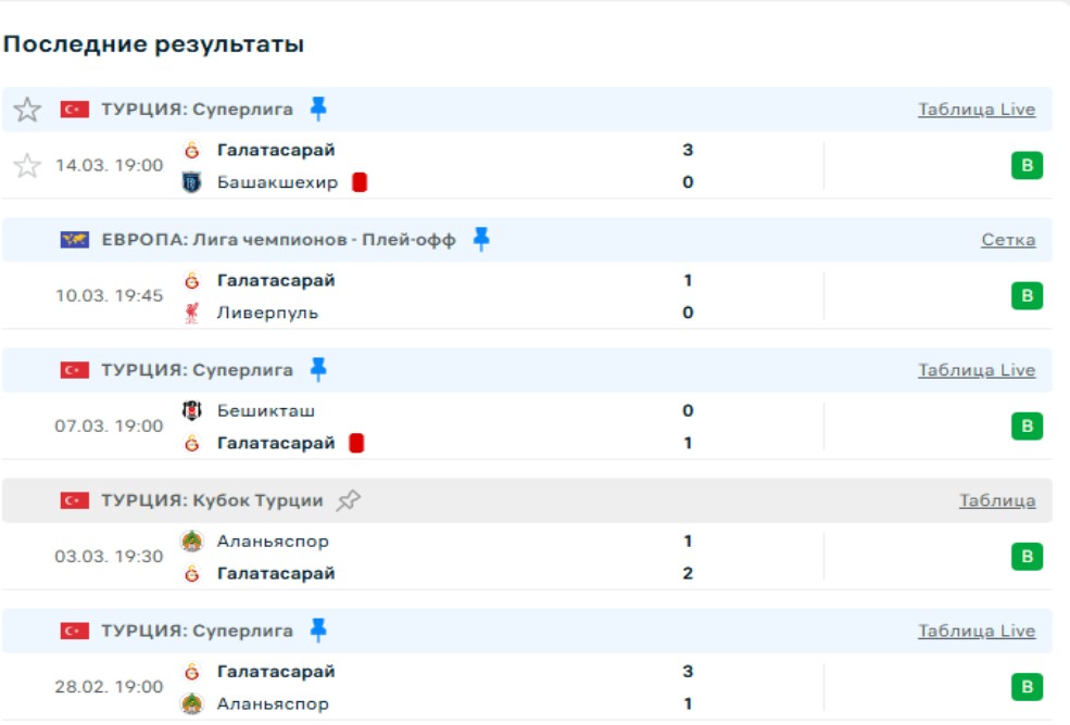 Последние игры Галатасарая