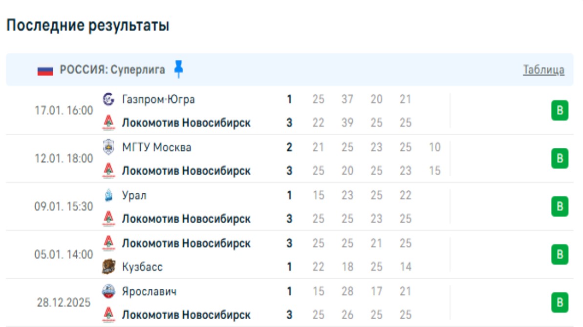 В первом круге чемпионата Локомотив на выезде убедительно победил 3:0. Волейболисты из Новосибирска выиграли в 7 из 8 предыдущих очных поединков.