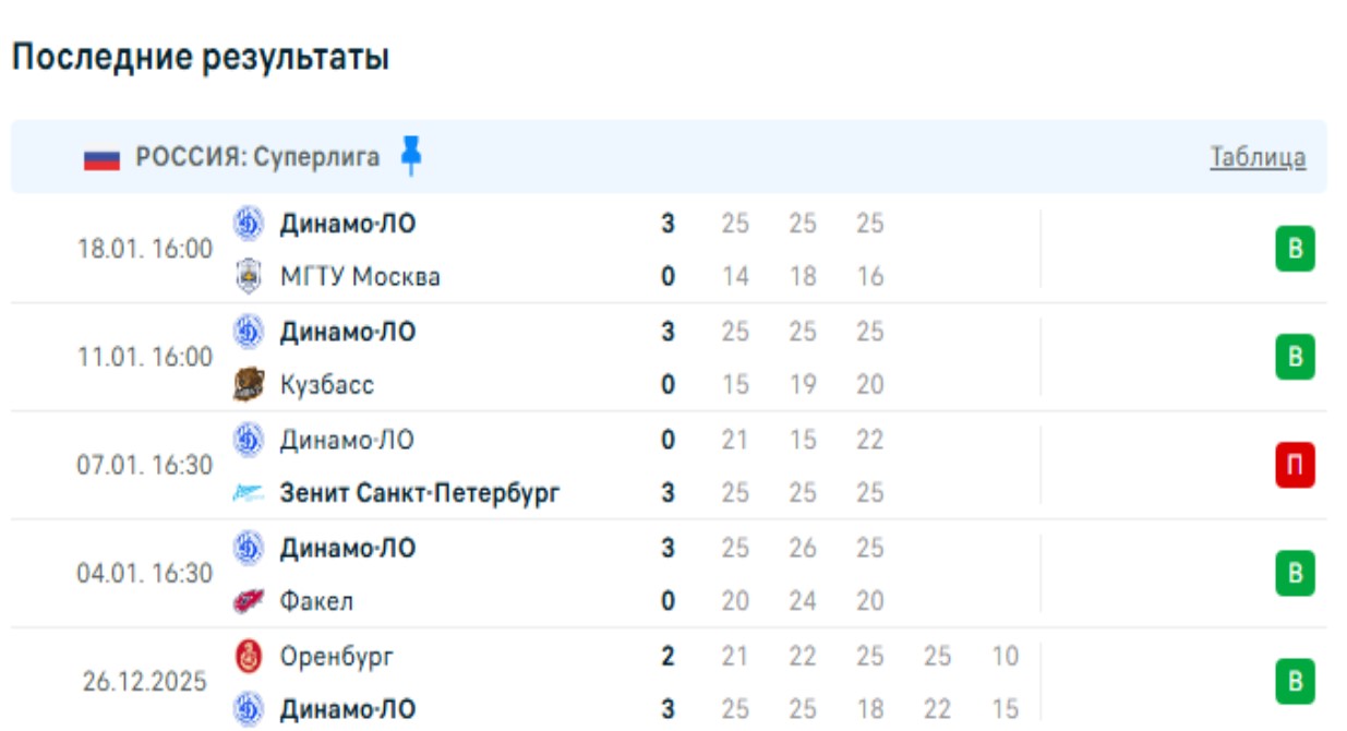 В 2 предыдущих турах подопечные Климкина встречались с аутсайдерами турнира и обыграли в 3 партиях Кузбасс и МГТУ. Сначала в матче против волейболистов из Кемерово бело-голубые не позволили соперникам набрать больше 20 очков ни в одной из партии. В следующем поединке против московского МГТУ преимущество Динамо-ЛО оказалось еще более подавляющим — 25:14, 25:18, 25:16.