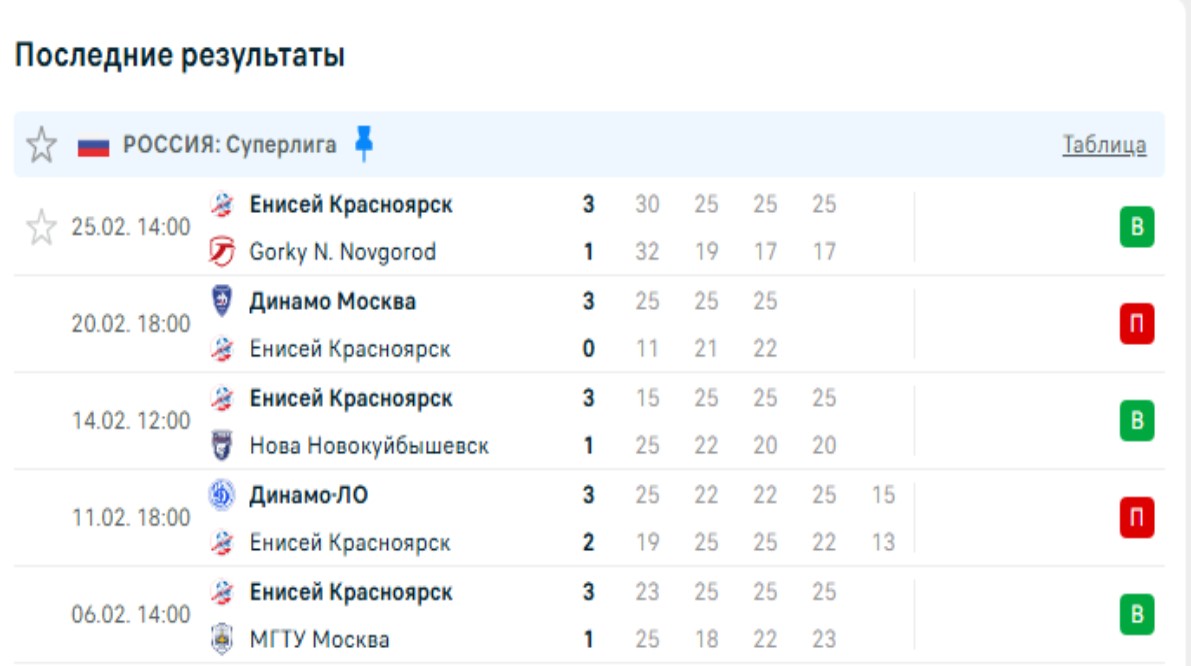 «Енисей» в последних пяти турах победил трижды. Команда Юрия Филиппова дома добилась успеха в матчах против МГТУ, «Новы» и «Горького». Все встречи выиграла с одинаковым счетом 3:1. На выезде уступила «Динамо-ЛО» (2:3) и столичному «Динамо» (0:3).