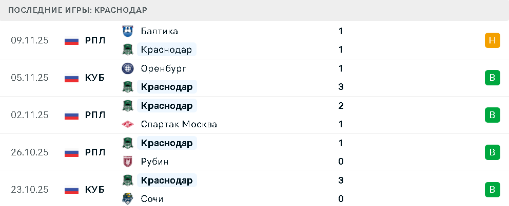 Последние игры «Краснодара»
