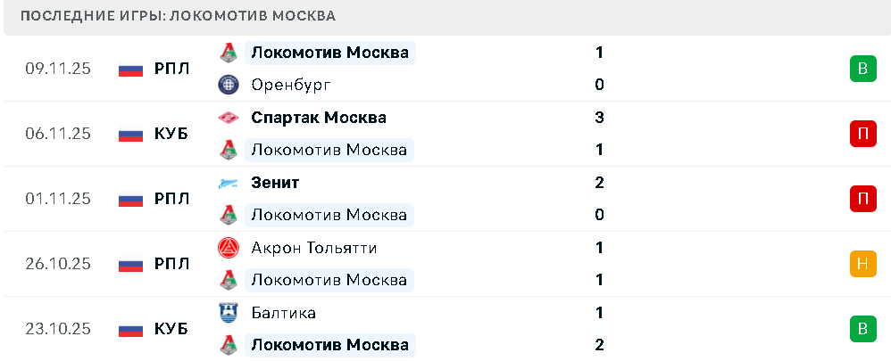 Последние игры «Локомотива»