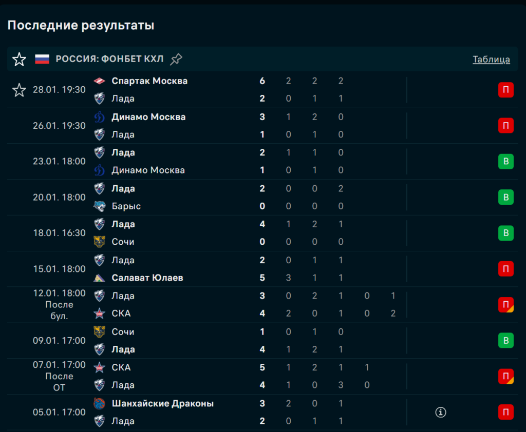 Личные встречи — это монолог «Локомотива». Шесть побед подряд, включая разгром 6:1 в Тольятти и волевую победу 3:2 в Ярославле. Даже когда «Лада» начинает с преимущества, как в октябре, она не может удержать его до конца. Ярославцы умеют дожимать, особенно на своём льду.