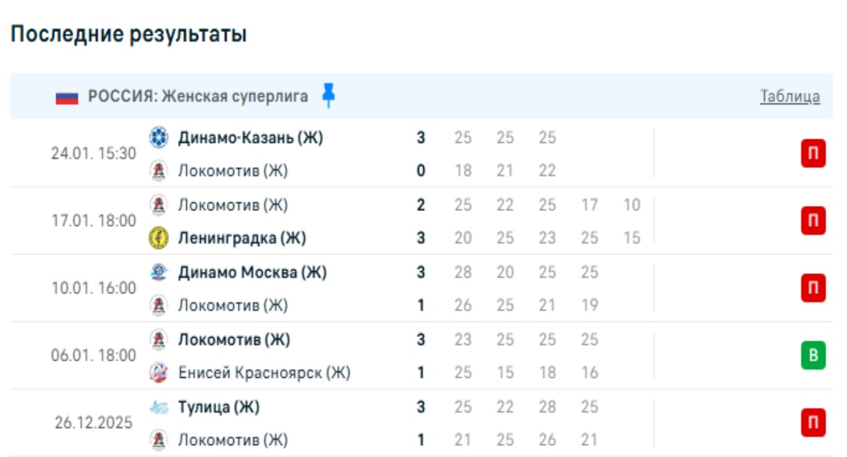 «Локомотив» примет коллектив из Подмосковья после трех поражений подряд. В предыдущих турах подопечные Воронкова проиграли конкурентам, которые выше в таблице. С «Ленинградкой» бились до конца, уступив на тай-брейке, у московского «Динамо» отобрали одну партию. Только в прошлом туре в Казани были беспомощны, уступив 0:3.
