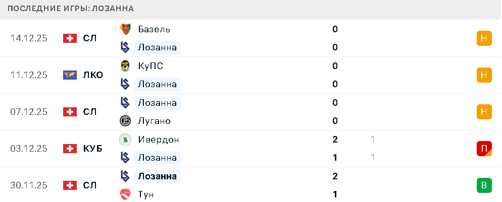 После победы над «Туном» «Лозанна» в основное время четырежды сыграла вничью — с «Ивердоном», «Лугано», КуПСом и «Базелем».