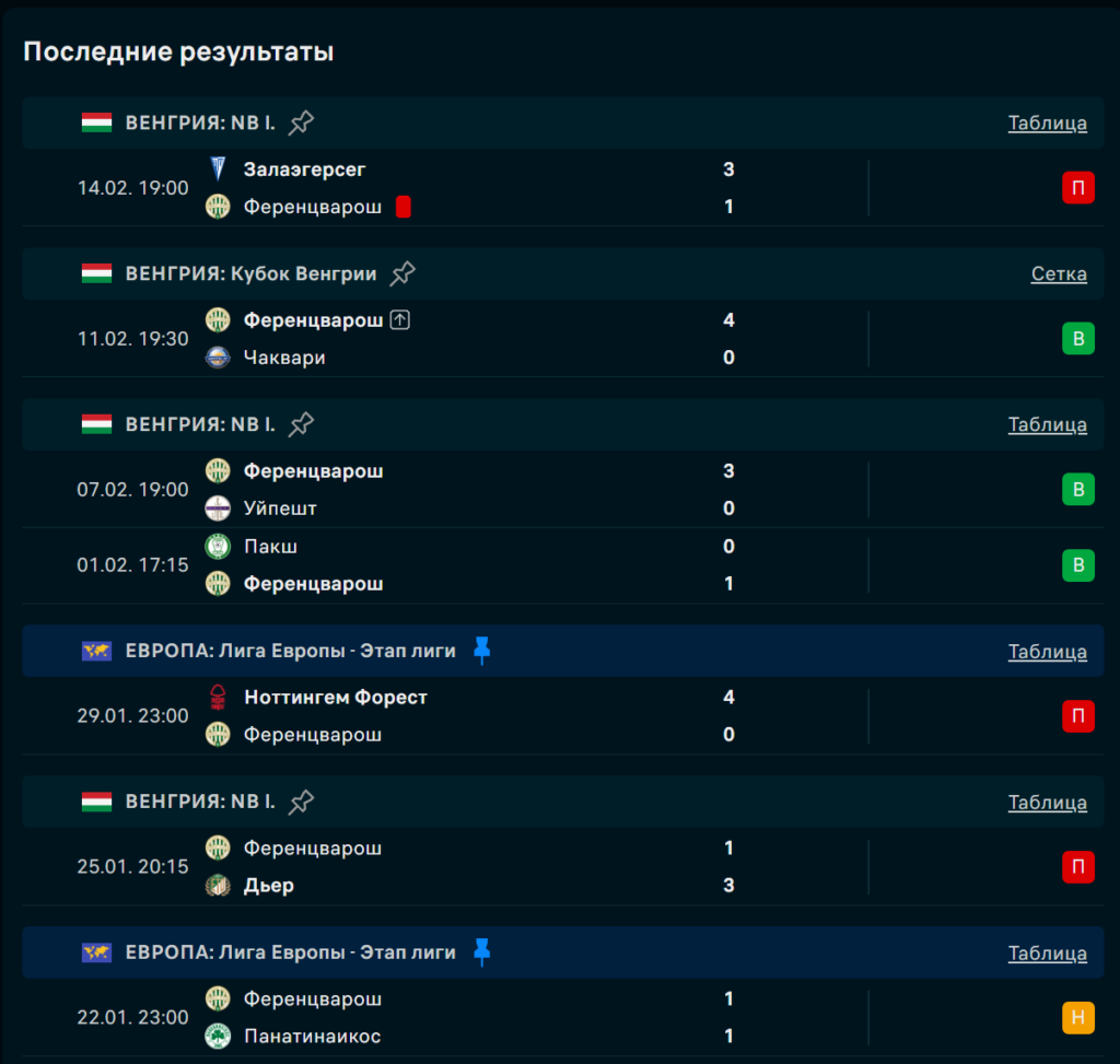 За сезон соперники уже успели надоесть друг другу: 0:0 в Разграде, затем ответ в Венгрии, где «Ференцварош» забрал серию, и ещё одна победа венгров дома 3:1 в Лиге Европы. Важная деталь для первой игры сейчас в том, что единственный матч на болгарской земле прошёл без голов и без обмена «открытыми воротами». Эта пара лучше всего играет на нюансах, а не на карнавале.