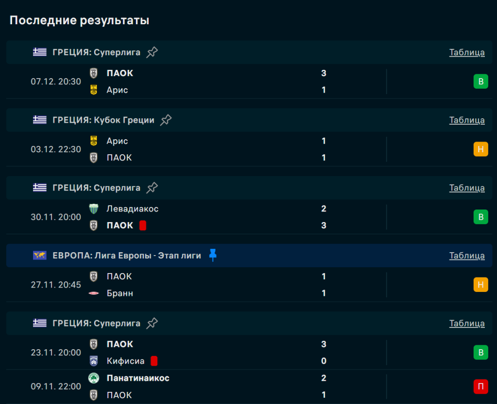 ПАОК не проигрывает в 5 из 6 последних матчей: победы над «Арисом» (5:2), «Левадиакосом» (4:3), «Кифисией» (4:0), ничья с «Бранном» (1:1). В ЛЕ — лишь одно поражение (1:3 от «Сельты»), победа над «Лиллем» (4:3) в гостях. Атака гостей эффективна: 10 голов в 5 матчах ЛЕ, 2+ гола в 9 из 13 матчей чемпионата.