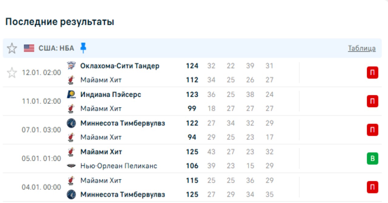 Последние игры Майами Хит