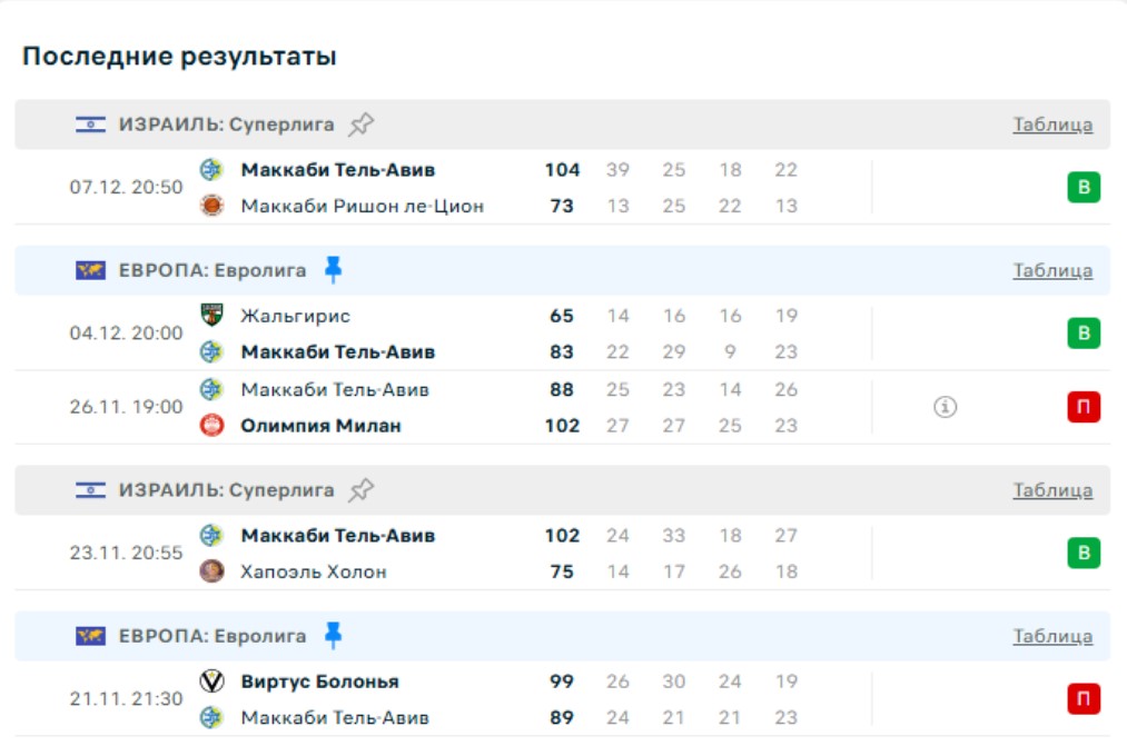 В израильской Суперлиге коллектив из Тель-Авива в минувшее воскресенье разгромил одноклубников из Ришон ле-Цион со счетом 104:73. В турнирной таблице Маккаби идет вторым с одним поражением за сезон, уступая только Хапоэлю.