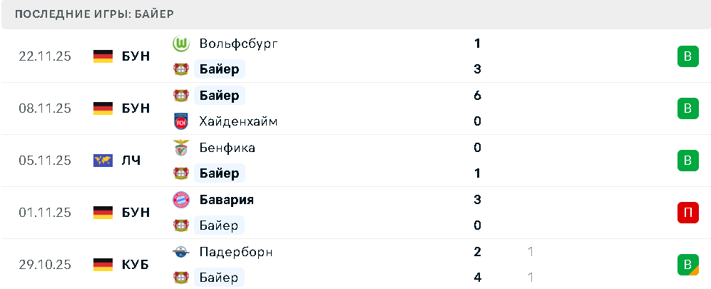 В пяти последних матчах «Байер» потерпел только одно поражение от «Баварии». До этого была ничья в основное время в Кубке Германии против «Падерборна». А в трех последних матчах команда победила «Бенфику», «Хайденхайм» и «Вольфсбург».