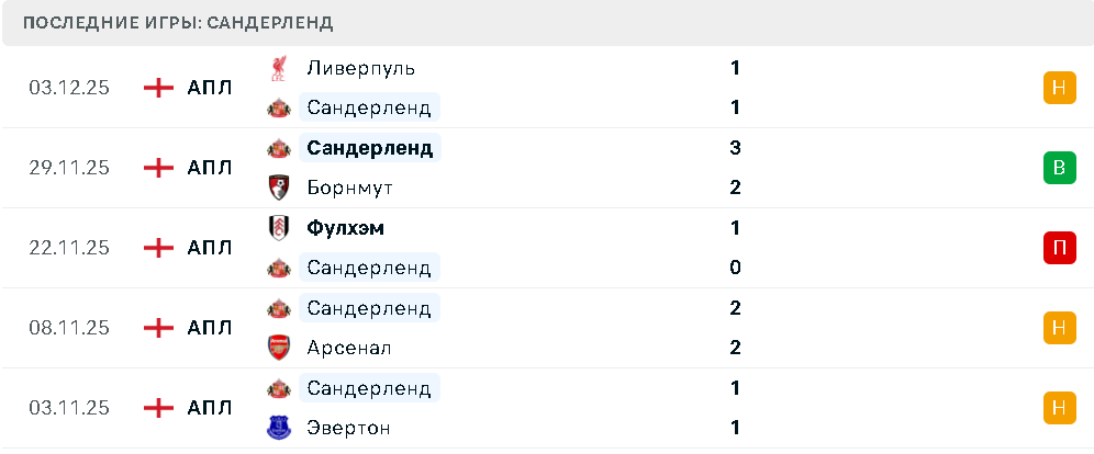 В пяти последних матчах «Сандерленд» потерпел лишь одно поражение — от «Фулхэма», одну победу — над «Борнмутом», а также сыграл вничью с «Эвертоном», «Арсеналом» и «Ливерпулем».