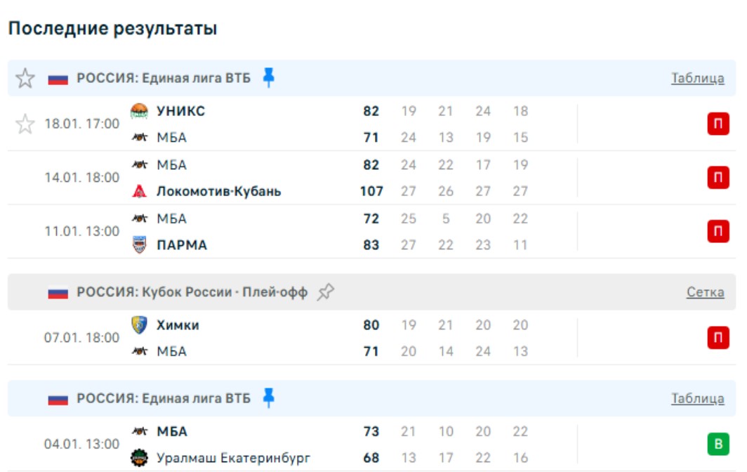 Последние игры МБА