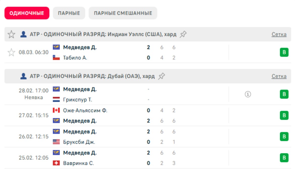 Последние игры Медведева