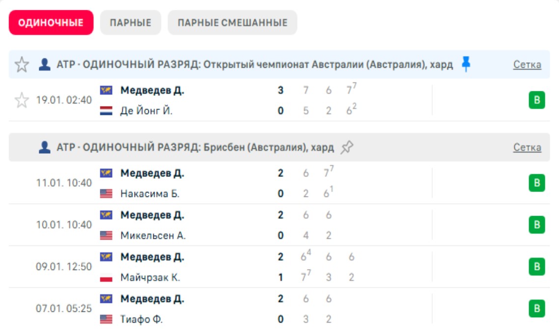 Последние игры Медведева