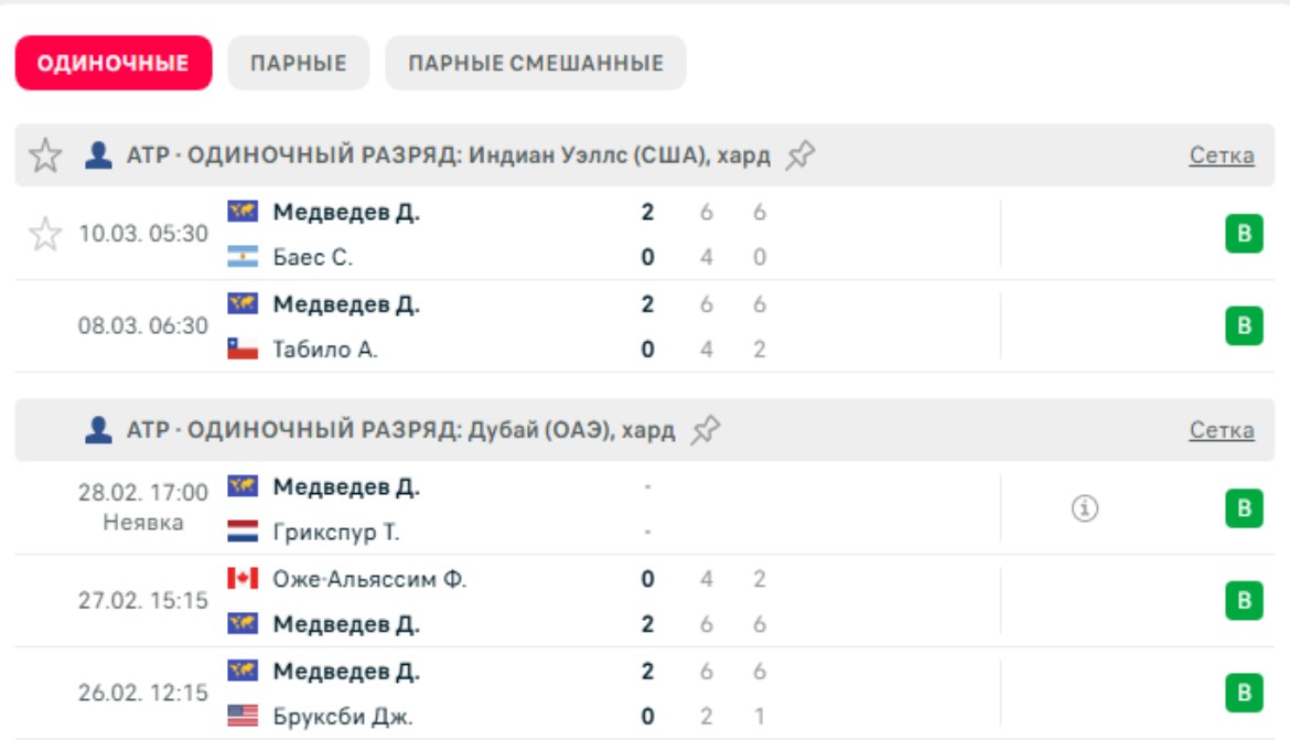 Последние игры Медведева