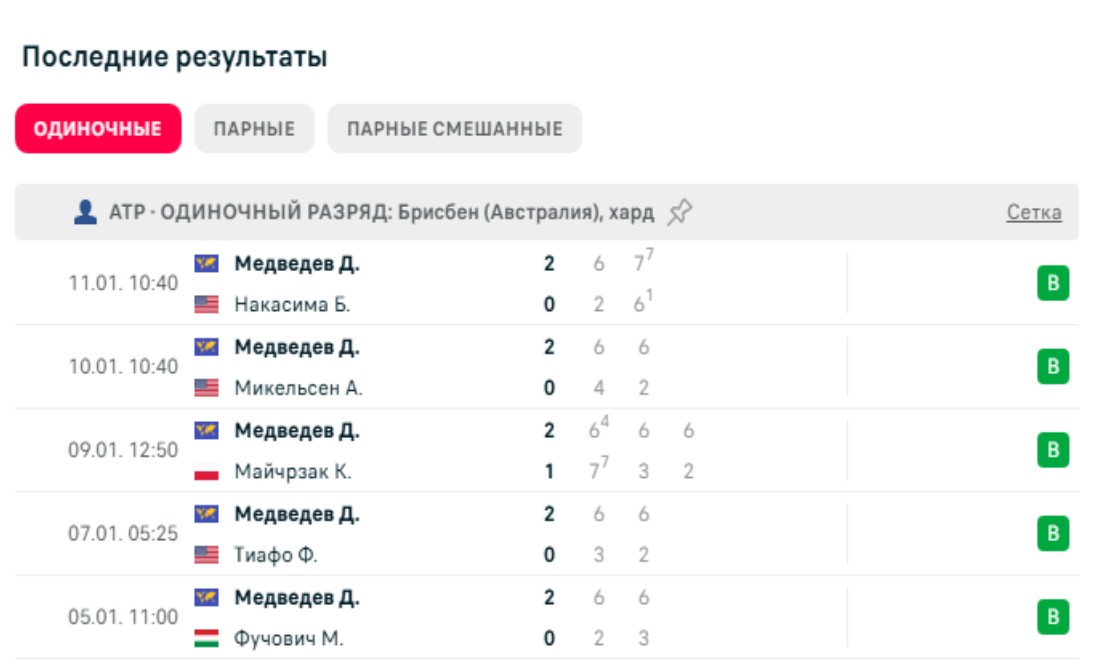 - Медведев приезжает в Мельбурн с серией из 5 побед подряд, которая продолжается после победы на турнире в Брисбене.