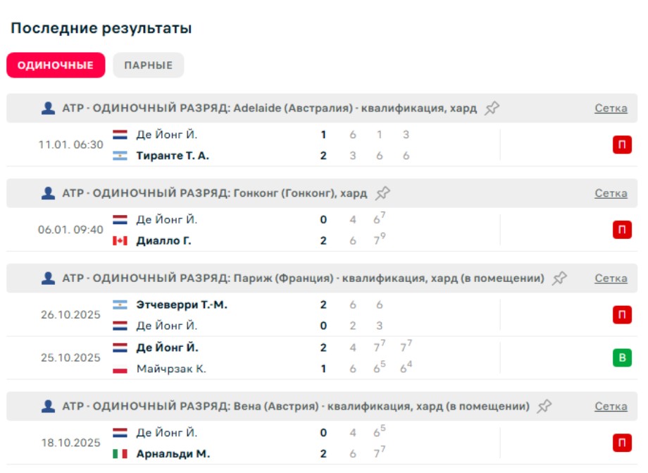 - У Де Йонга 6 поражений в предыдущих 7 встречах на всех турнирах.