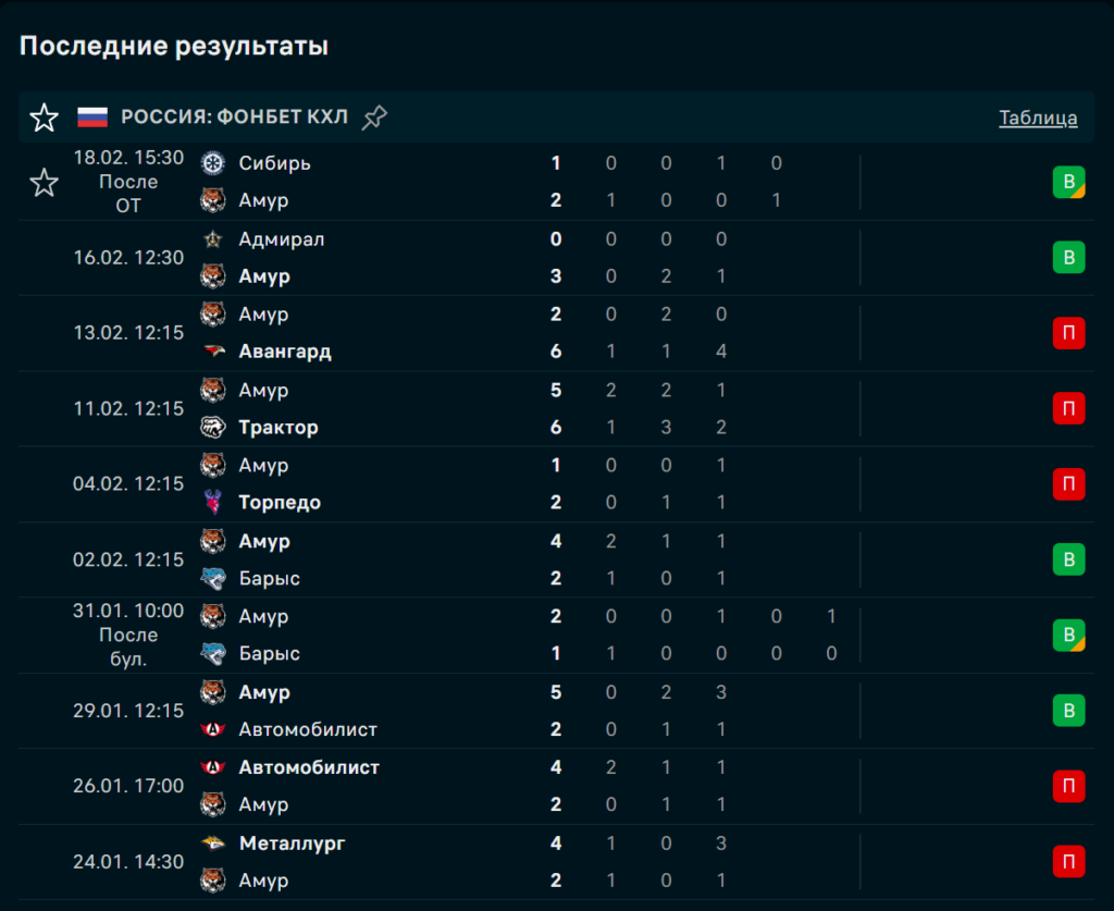 Выездные 3:0 над «Адмиралом» и 2:1 в ОТ с «Сибирью» показали, что «Амур» умеет терпеть и выжимать концовки. До этого дома развалились против «Авангарда» 2:6 и отдали матч «Трактору» 5:6 в атакующем хаосе. С «Торпедо» было 1:2, где не хватило второго гола. Команда либо держит структуру, либо быстро раскрывается.